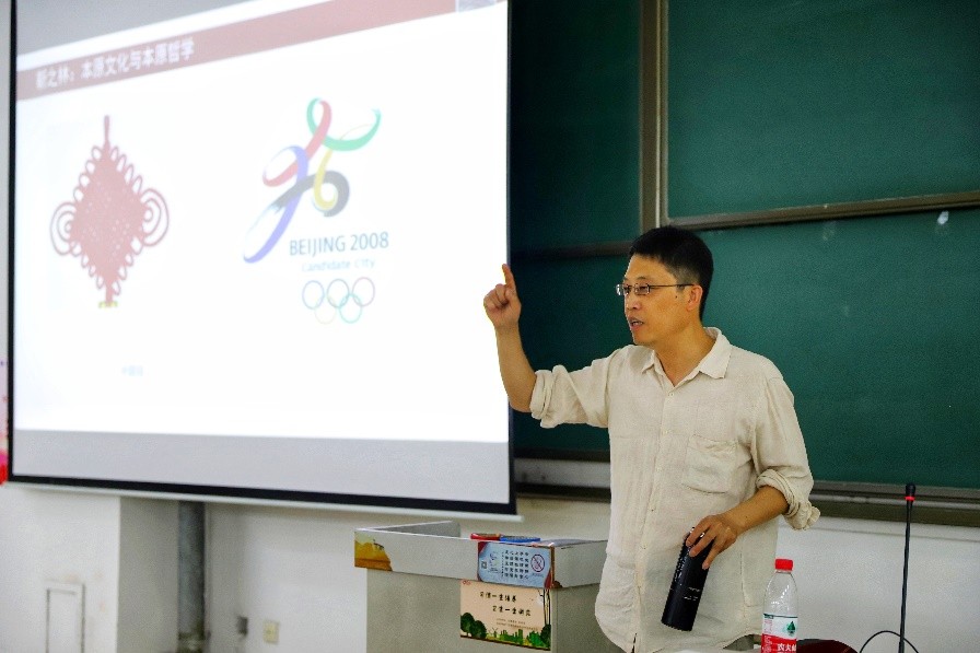 朱亮副教授指出:中国元素与中国设计,中国元素作为新时期对传统文化的重新弘扬而提出,具有时代的必要性和现代性。“中国元素运动”其实是中国在世界多元文化中争取自身地位、反对文化殖民主义的一场运动,是一个强大的民族应该拥有的形象特征;同时,也应该是一场民族主义美学运动。仅仅重视其商业价值的关注度,难免会让这项运动成为某种噱头而简单化和庸俗化,甚至完全相悖地让中国传统符号呈现丑陋与病态。元素的使用如果不能凸显民族价值标准,道德标准以及思维习惯,则不能形成中国设计;缺少民族审美习惯和造物思想的作品不能成为中国设计;文化自尊其实是“中国设计”形成的更为重要的态度。朱亮副教授介绍靳之林,当代著名油画家、美术教育家、中国本原文化学创始人。本原文化与本原哲学是靳之林先生终其一生,从民俗艺术事象进入理论研究的成果,其核心思想概括为:以“阴”和“阳”作为阐释万物形成的朴素哲学观。南朝宋宗炳澄怀味象,达至澄澈的空明的心境来看待物象——“畅神”、“观道”。