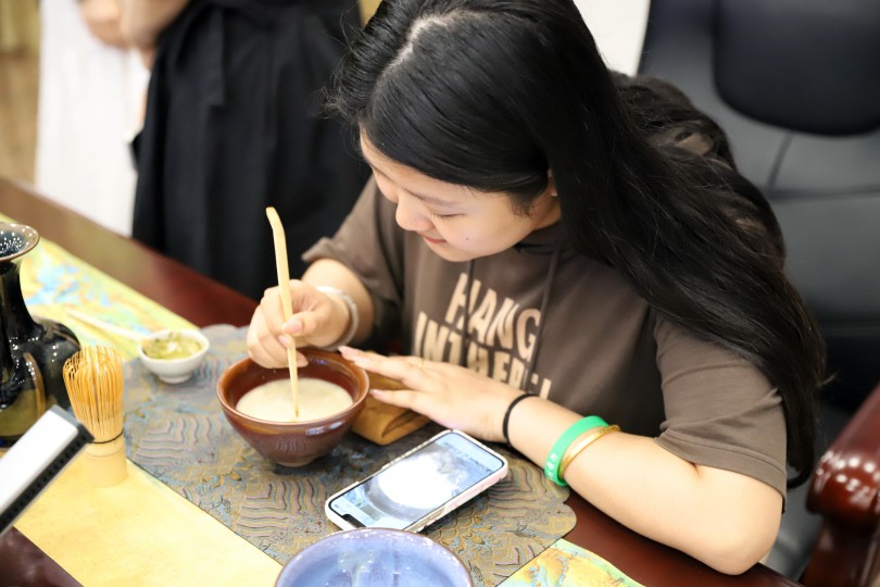 最后,王晓丽现场演示“宋风雅韵”点茶表演,并让在场师生体验了点茶技巧,亲身感受传统茶文化的独特魅力,让大家感到十分新奇,收获颇丰。