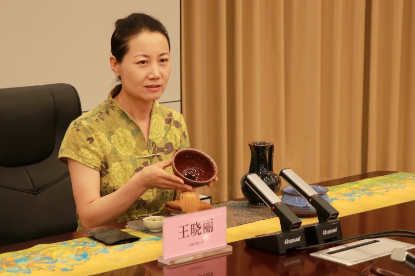 万长铭以“千年之约 因茶而生——建盏的历史渊源”为题,深入探讨了建盏文化的历史背景与发展。并将其带来的建盏作品分享给与会嘉宾和学生们传阅观看,生动具体的展现出了建盏的魅力所在。