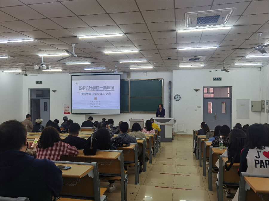 为贯彻落实党的教育方针,深化教育教学改革,总结一流课程暨课程思政建设成效,进一步提升本科教学水平,艺术设计学院本学期启动了教学示范与交流系列活动。首期两堂示范课于2021年10月7日下午14:00在河西校区A104由纪向宏教授、孙豫副教授开讲,学院全体领导班子及全院教师参加了此次交流,活动由教学院长王洪阁主持。