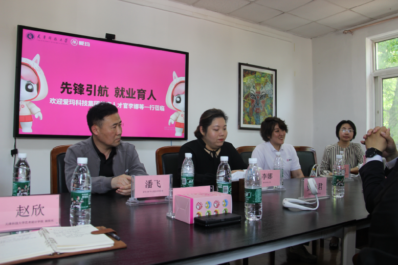 颁奖典礼结束后,贾启君副书记率领相关中层领导与爱玛首席人才官李娜等人在艺术设计学院进行了一场标题为“先锋引航 就业育人”的座谈,双方就人才培养、产品研发、校园招聘等事宜进行深入洽谈,双方一致认为,持续巩固拓展本次活动成果,加快推进双方高质量内涵发展。